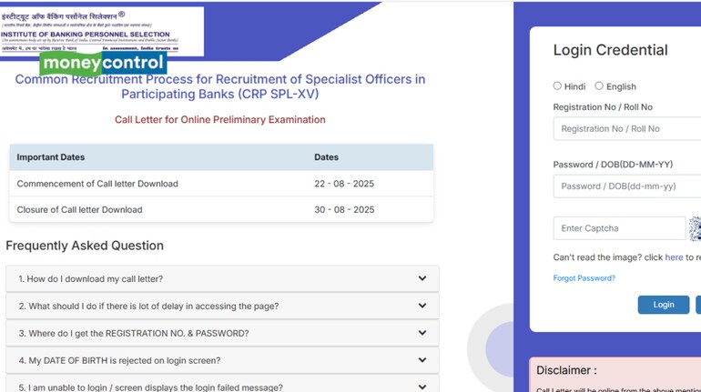 The Institute of Banking Personnel Selection (IBPS) has released the admit card for the IBPS Specialist Officer (SO) Prelims Exam 2025. Candidates who have applied successfully for the exam can now download their admit cards using their registration number/roll number and password/date of birth.