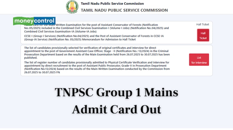 TNPSC Mains Admit Card: The Tamil Nadu Public Service Commission has released the admit card for the Group 1 Main Examination 2025. The hall ticket has been issued for candidates shortlisted under Notifications No. 04/2025 (Group-I) and No. 05/2025 (Group-IA). Candidates must download and print the hall ticket from the official website, as it is required for entry to the examination centre.