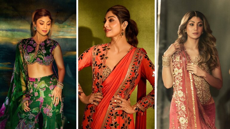Shilpa Shetty is a true style diva, often spotted wearing vibrant ethnic ensembles. The actress posts numerous pictures on Instagram, flaunting her designer outfits, which serve as perfect inspiration for the festive season. Her colourful dresses blend traditional craftsmanship with contemporary design and are adorned with beautiful motifs. Take a look at five Navratri outfits from her recent outings that you’ll love…