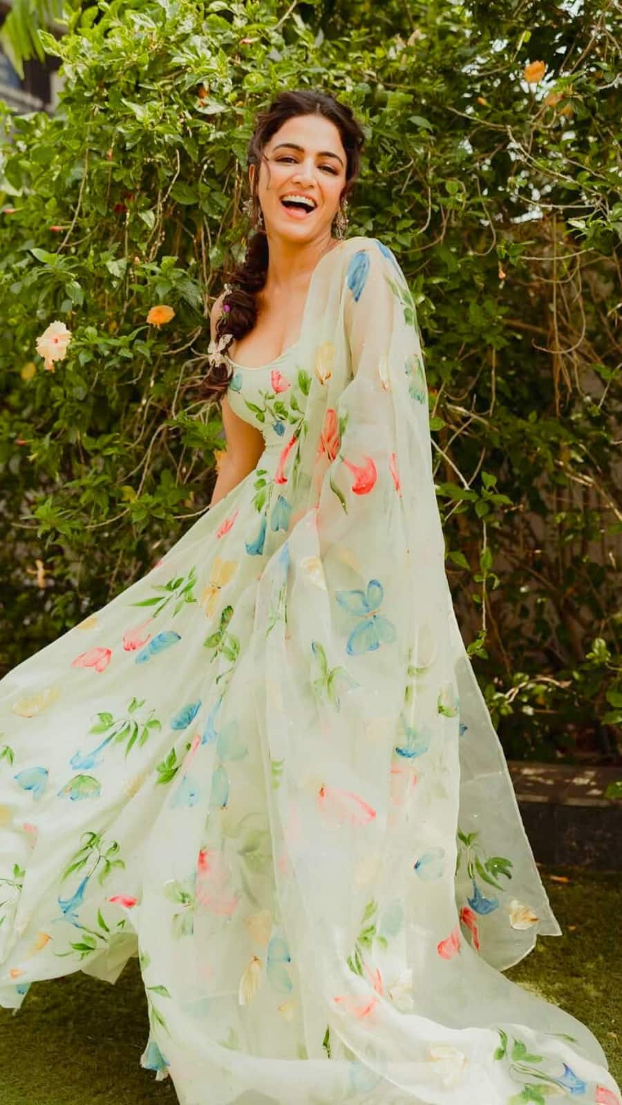 The actress rocks a floral Anarkali with beautiful gota-patti embroidery in the freshest shade