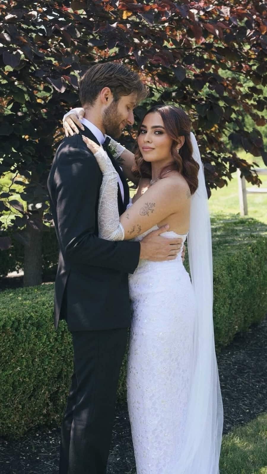 The popular social media influencer wore a strapless white gown paired with a delicate veil