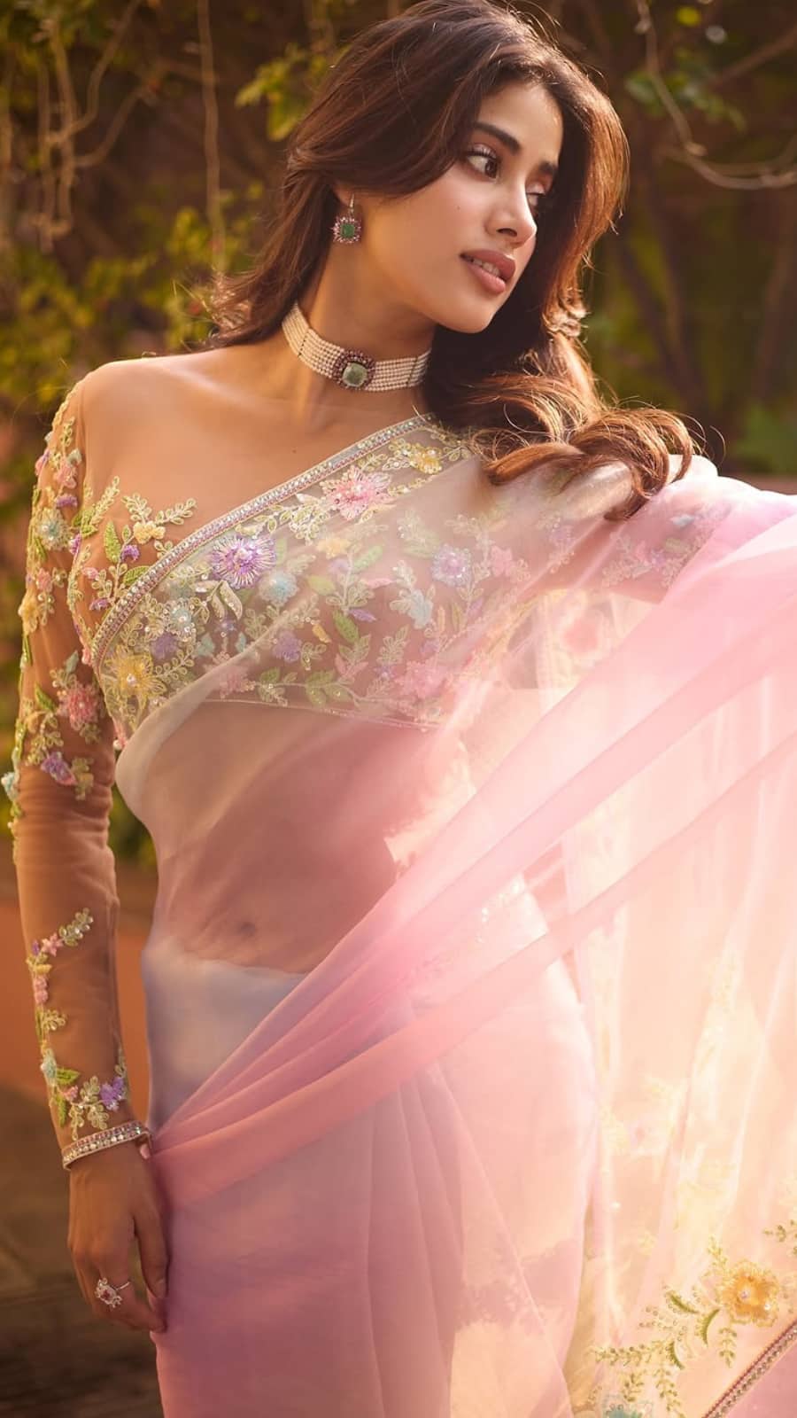 Janhvi beautifully carries forward Sridevi’s love for sarees. She looks breathtaking in this delicately embroidered ensemble
