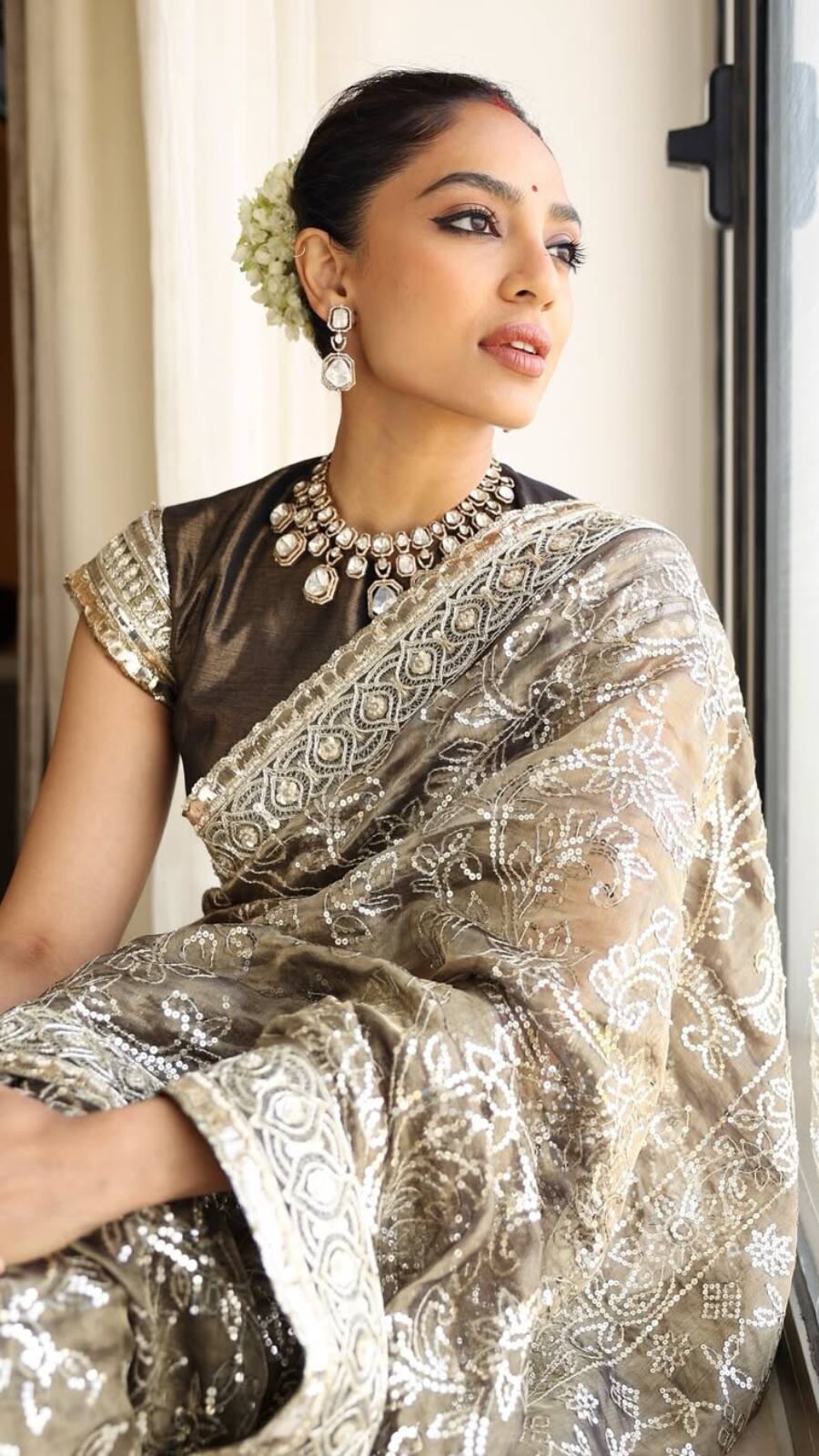 If you love a glamorous look, Sobhita’s zardozi tissue saree is the perfect pick
