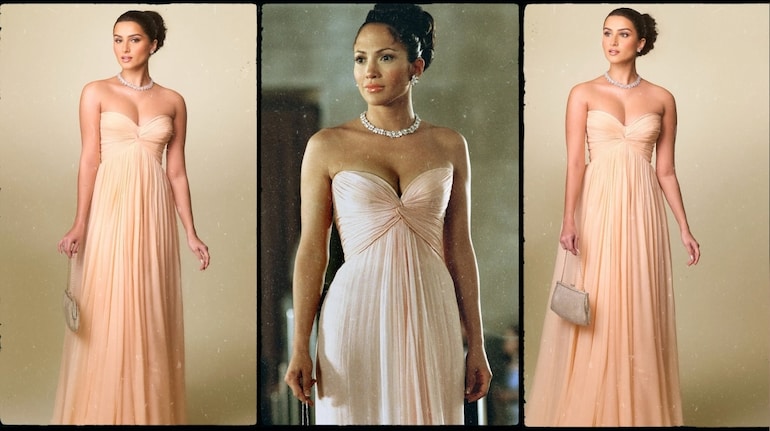Tara Sutaria recently recreated a look and it was Jennifer Lopez's look from Maid in Manhattan. Dressed in a strapless nude-peach gown featuring a sweetheart neckline, Tara looked stellar. The actress posted some snaps of her look on her Instagram and captioned the post as, "An homage to one of my favourite costumes worn by an actress in film, ever.. Jennifer Lopez in “ Maid in Manhattan “ ✨She was/is the epitome of elegance and glamour."
