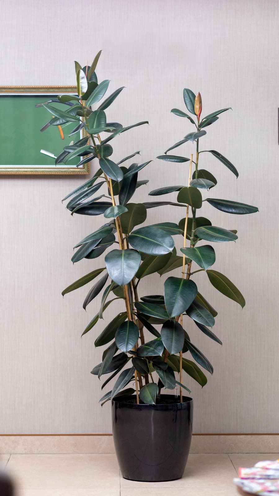 The presence of indoor plants, like the rubber plant, has been shown to reduce stress and improve mental well-being