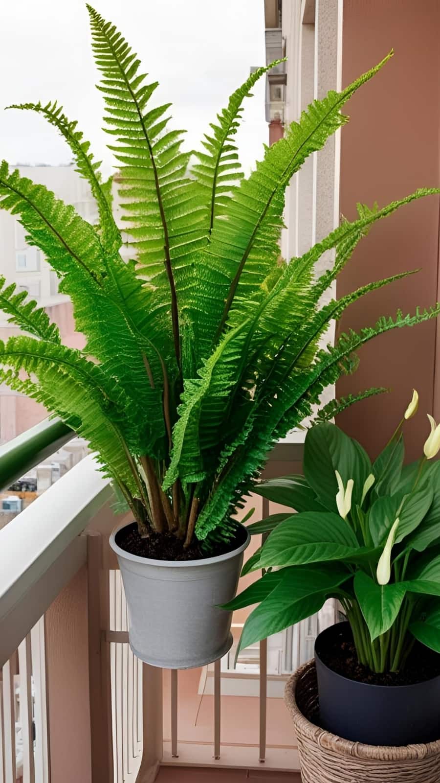 Plants like ferns or peace lilies can help remove pollutants from the environment, even on an open-air balcony, making your space healthier and fresher