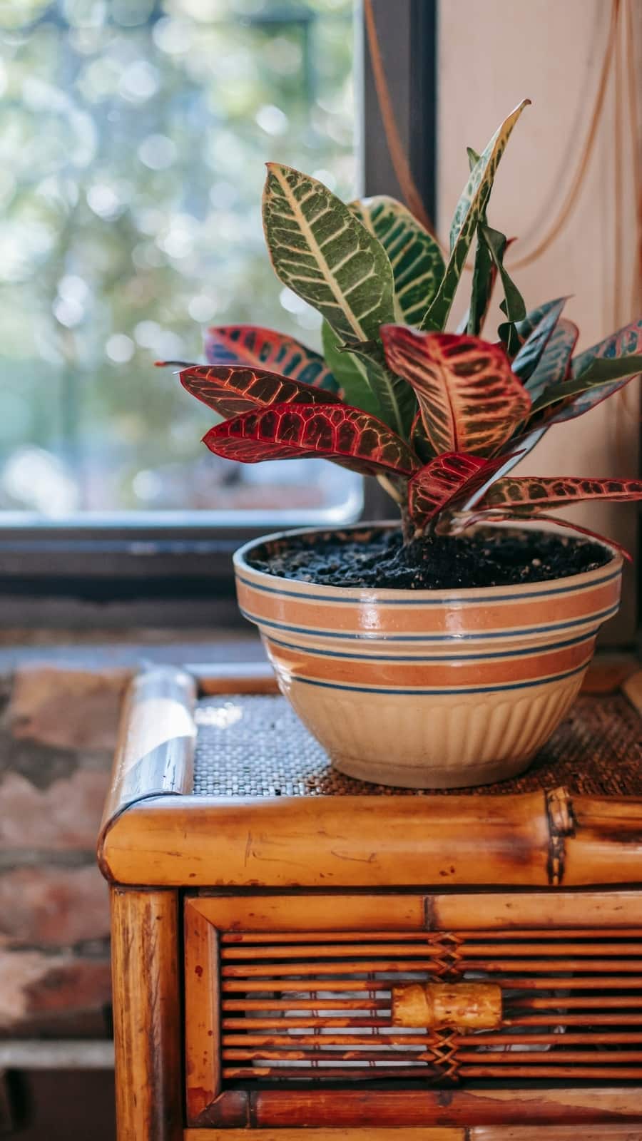 Crotons prefer warm temperatures between 60-85°F (15-29°C). Keep them away from drafts, cold windows, sudden temperature changes