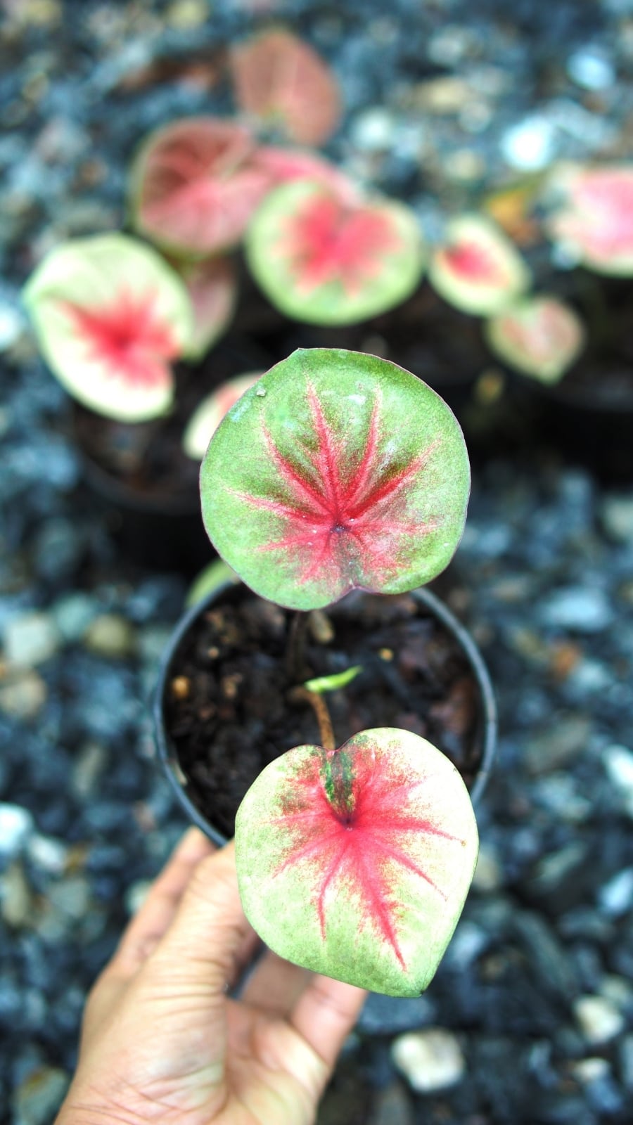 Caladiums enjoy high humidity. To maintain humidity, place a humidity tray beneath the plant, or regularly mist the leaves