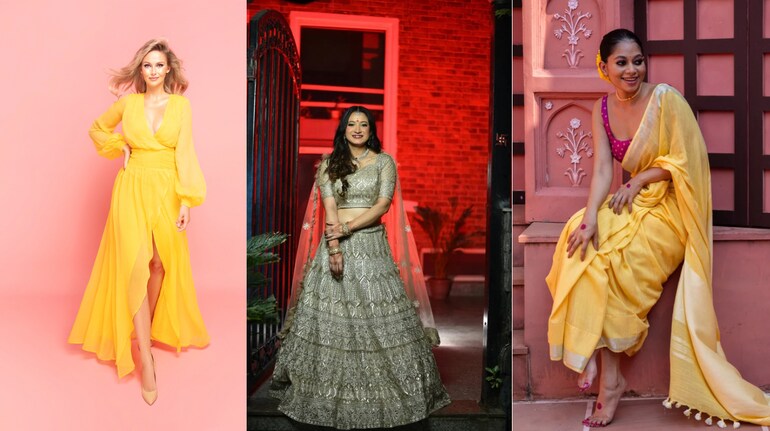 To capture the spirit of Haldi, choose an outfit that’s as bright and cheerful as the occasion itself. You can opt for flowy kurtas, lehengas, or even a jumpsuit in sunny yellow or gold (Images: Canva)