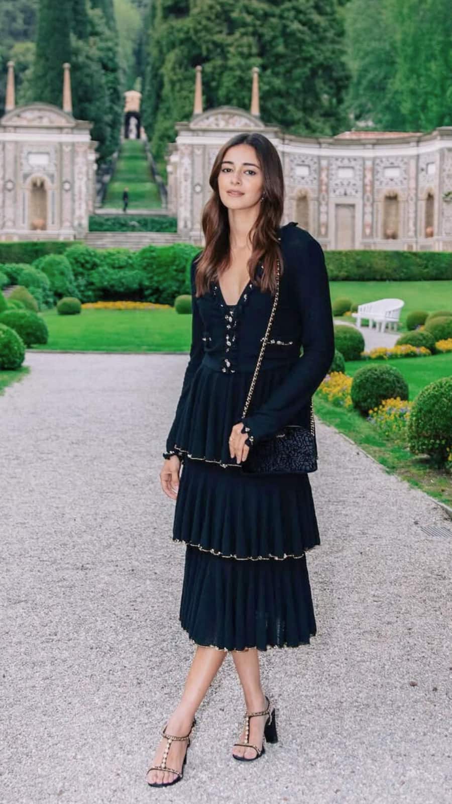 For the main show, Ananya chose a three-tiered black dress by the luxury house