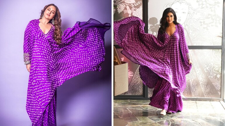 In the vibrant Bollywood, style face-offs between actresses are too frequent and entertaining. Recently, two Bollywood actresses, Karishma Tanna and Sonakshi Sinha, were spotted wearing stunning purple Bandhani ensembles by designer Anushka Khanna. Although, each actress brought her unique flair and charisma to the outfit, netizens had a tough time deciding who wore it better.