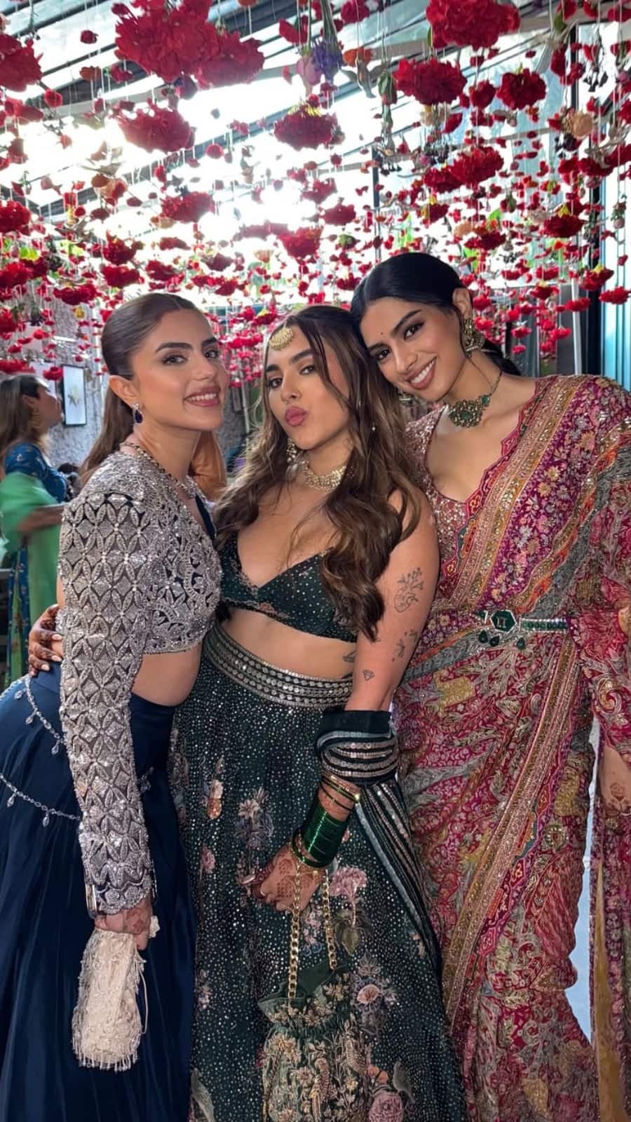 Khushi Kapoor shines at BFF Aaliyah Kashyap’s wedding festivities, attending the mehndi ceremony in a richly embroidered colourful saree