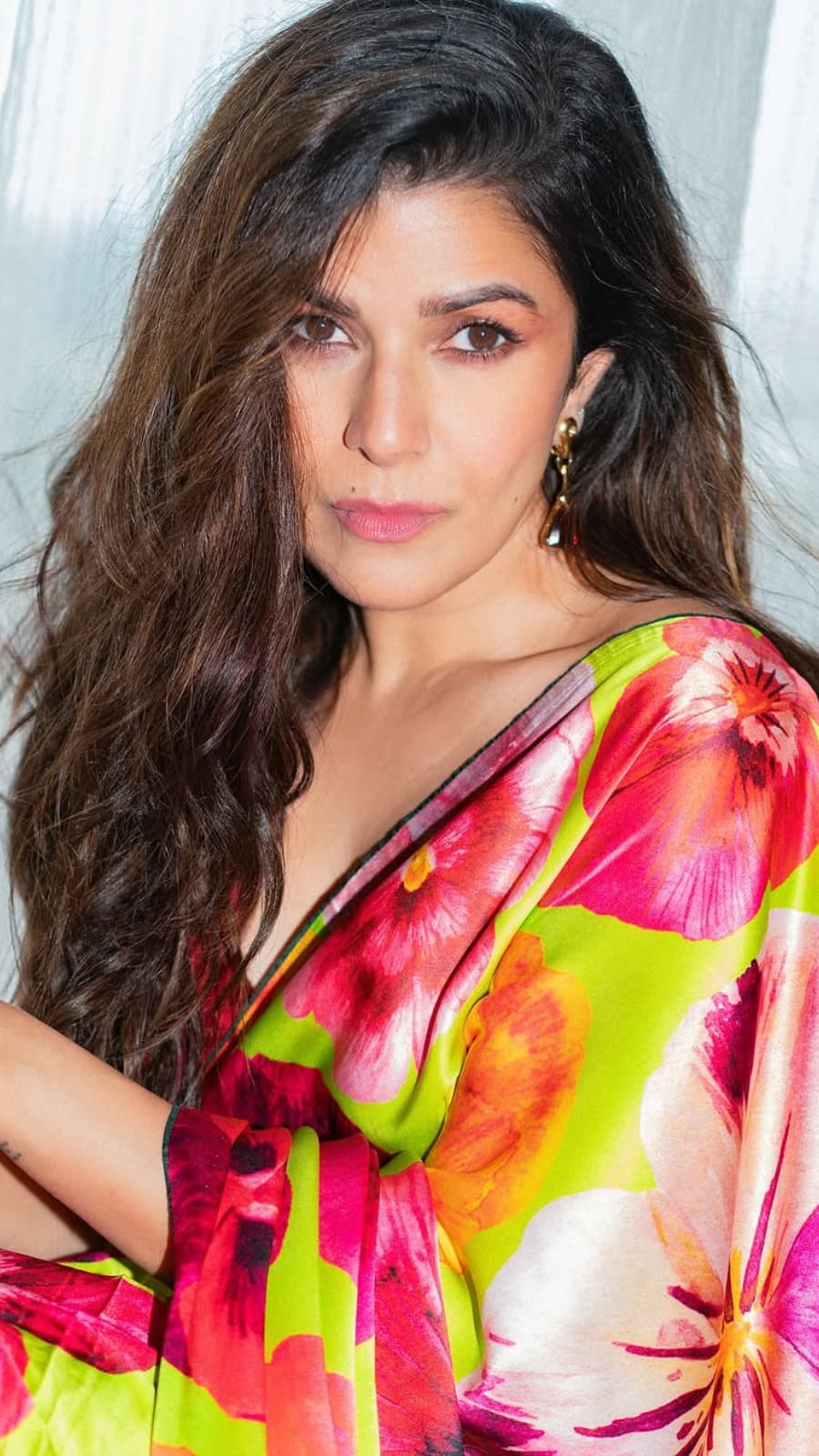 The actress dons a gorgeous floral saree in refreshing summer hues, styled with a contemporary knotted blouse