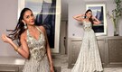 Rasha Thadani impressed at an awards night in a glittering, body-hugging gown with noodle straps and a sheer bottom. Her soft glam balanced the striking appearance. Styled with minimal accessories, she completed the look with voluminous, side-swept hair for a romantic finish.