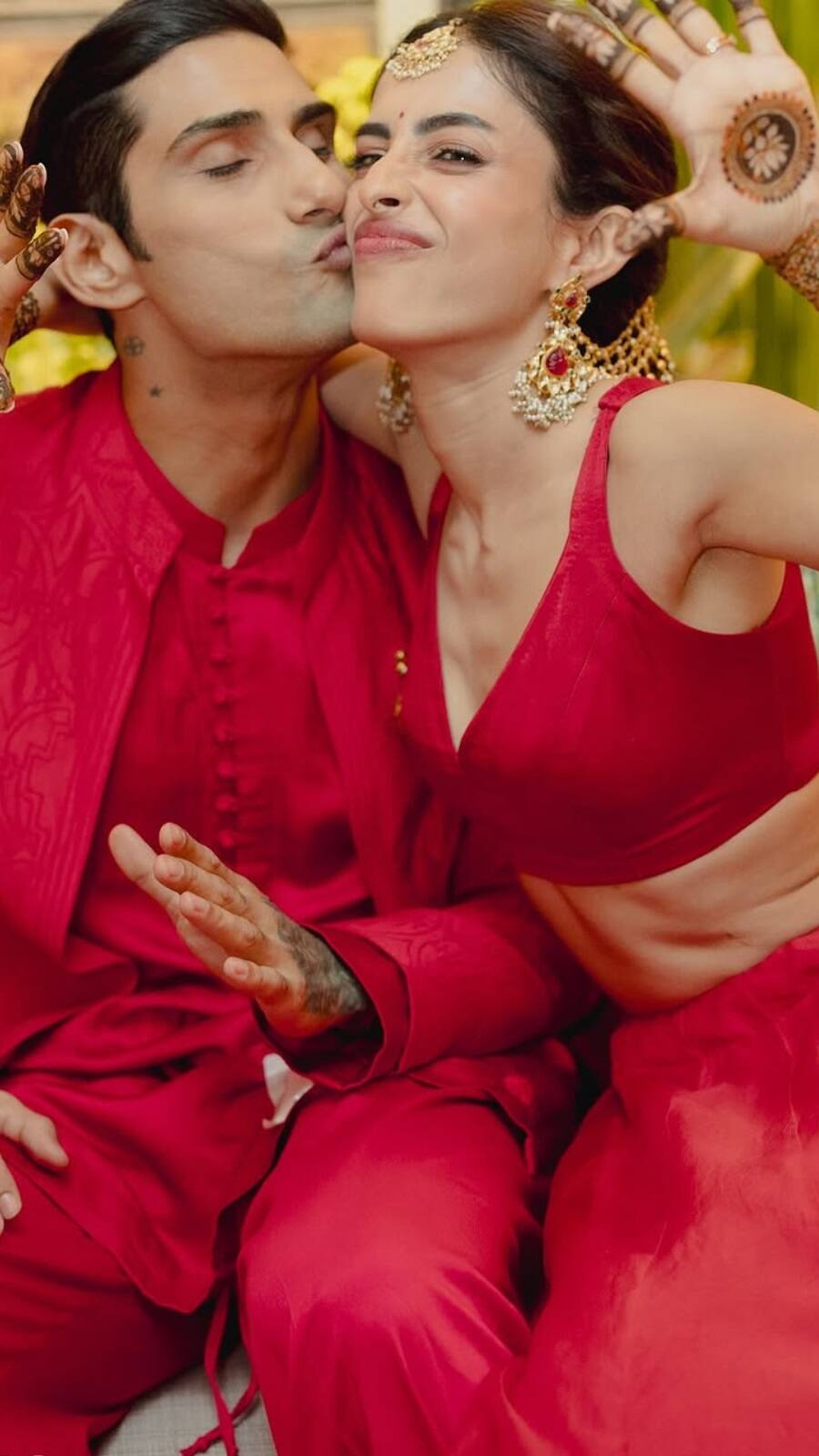 Prateik and Priya, who tied the knot in a private ceremony on February 14, shared pictures from their mehendi ceremony where they were seen wearing matching red outfits