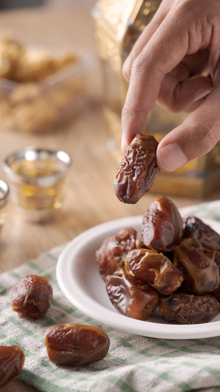 Breaking the fast with one to two dates and water helps restart the system of digestion. However, don’t ever overeat just as soon as you take a single bite