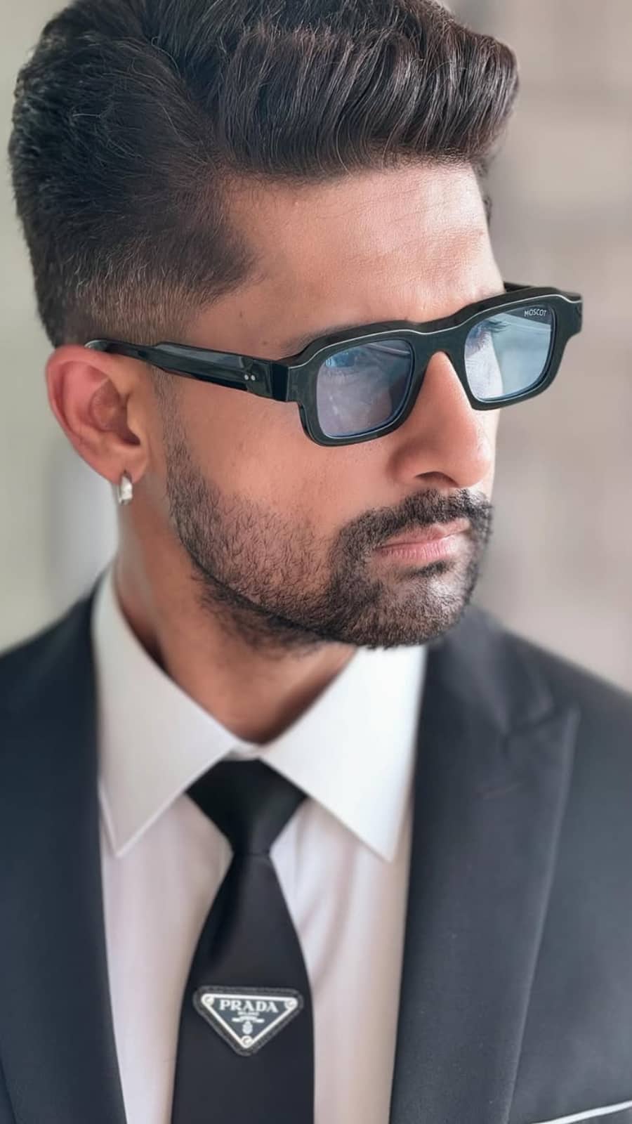 Ravi’s style is unmatched in a well-tailored, luxe black suit paired with a Prada tie and crisp white shirt