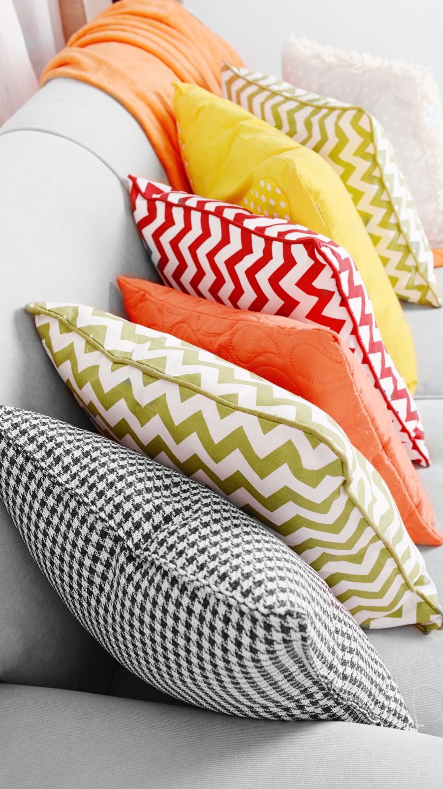 Distribute pillows of different colours evenly on each side of the sofa to avoid a lopsided appearance. This symmetric approach maintains visual balance and symmetry
