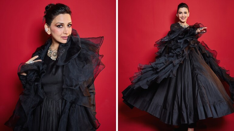 Sonali Bendre’s enigmatic charm came alive in a monochrome ensemble by designer duo Abu Jani and Sandeep Khosla. Her presence at a recent event cast a spell on onlookers—for all the right reasons.