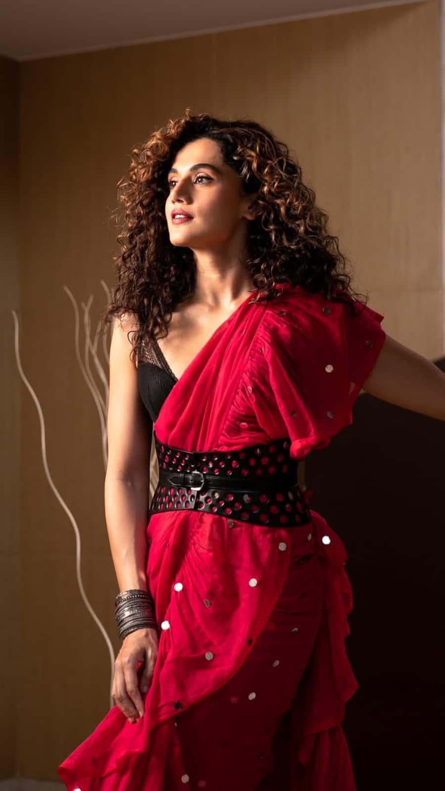 Taapsee knows how to pull off an unconventional saree, as seen in this black drape adorned with 3D roses