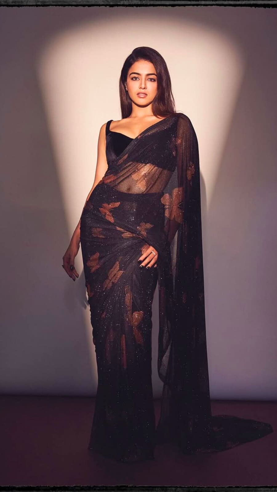 Wamiqa sparkles in this shimmery black saree with butterfly motifs