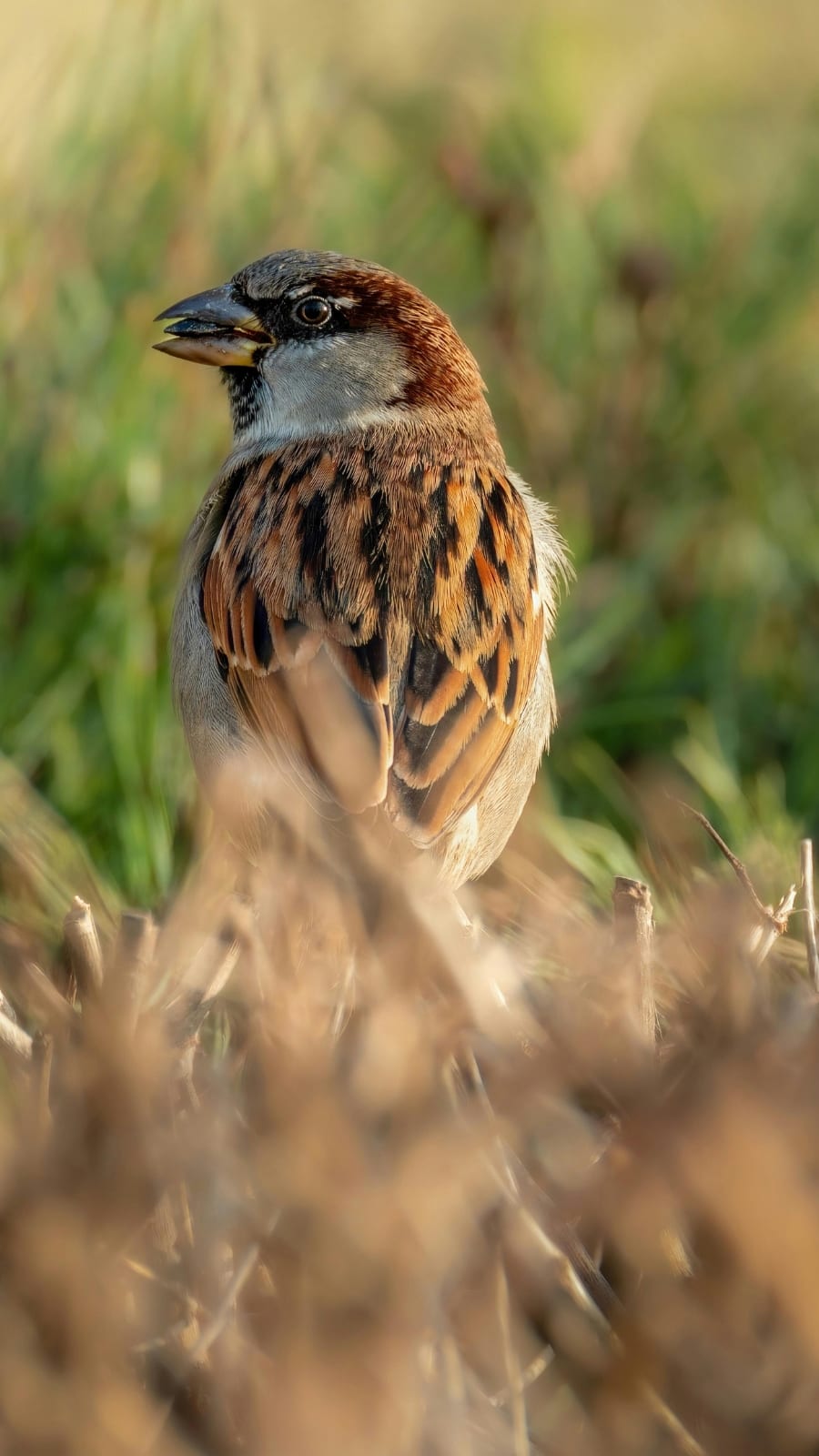 Sparrows need shade and nesting spots. Hang a bird house or provide native plants, bushes, and creepers for shelter and protection