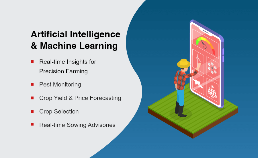 Addressing many of these challenges, Artificial Intelligence and Machine Learning are paving the way for intelligent farming. AI is empowering farmers with real-time demand forecasting, price forecasting, and sowing advisories