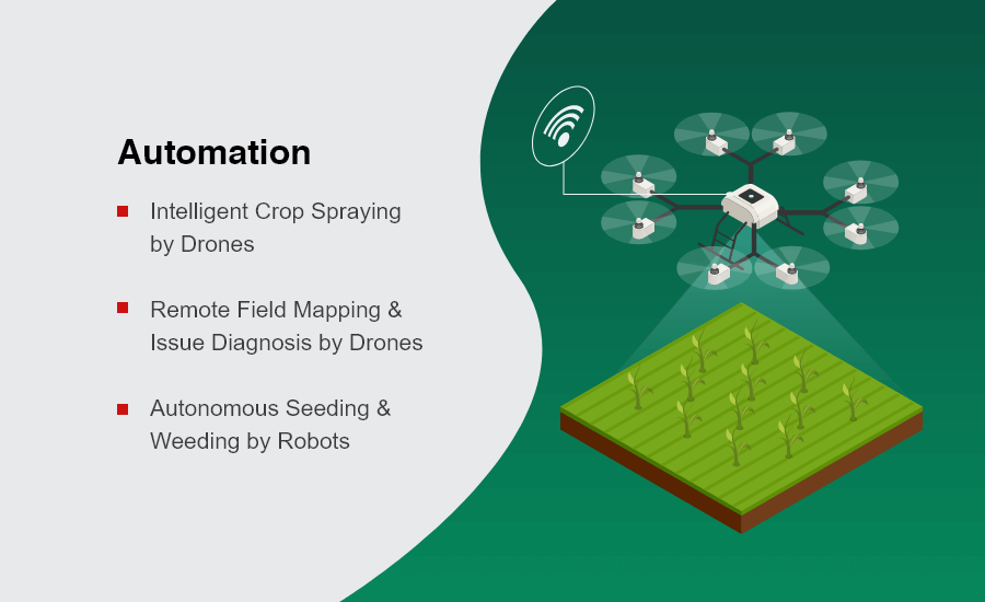 Automation is poised to revolutionize the modern farming with robotics and fully autonomous tractors & drones autonomously performing routine tasks like seeding, weeding & harvesting at a higher volume and faster pace.