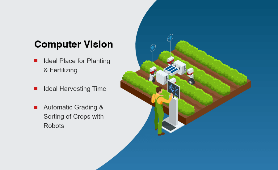 computer vision, can detect weeds and precisely spray herbicides bringing down expenditure on chemicals by 90%(5). Drones, aerial as well as ground-based, and satellite imagery can help farmers remotely monitor crops, diagnose