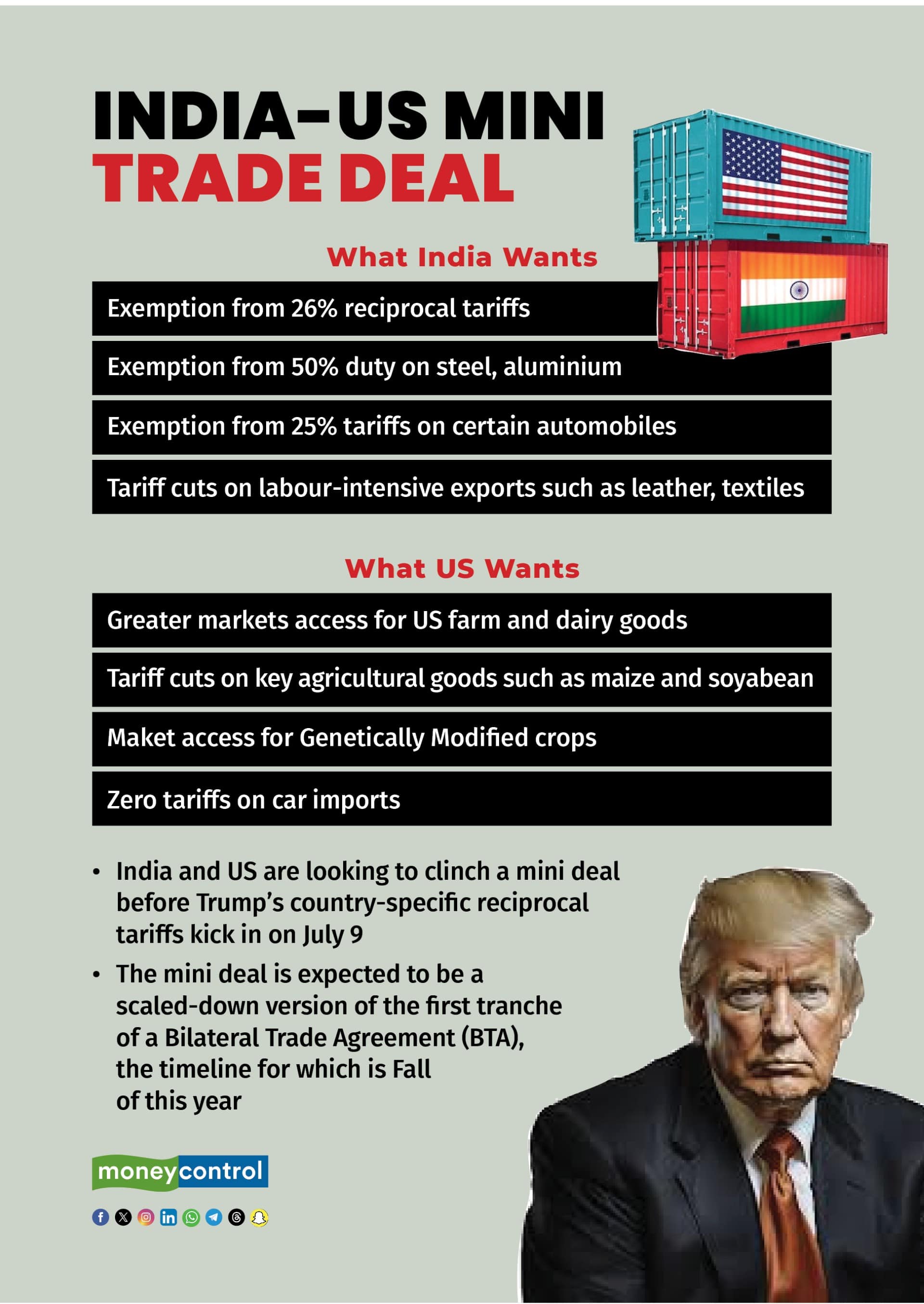 The ambition to seal a mini trade deal with the US before July 9 could make it difficult for India to secure tariffs lower than the Most Favoured Nation (MFN) rates, owing to America's legislative compulsions, Moneycontrol had reported earlier.
