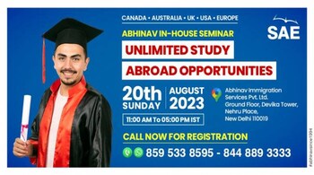 Abhinav Immigration Services Pvt. Ltd., one of the most seasoned and renowned immigration brands globally, is pleased to announce that it will host an in-house study abroad event on Sunday, August 20, 2023, from 11 AM to 5 PM IST at its head office in New Delhi.