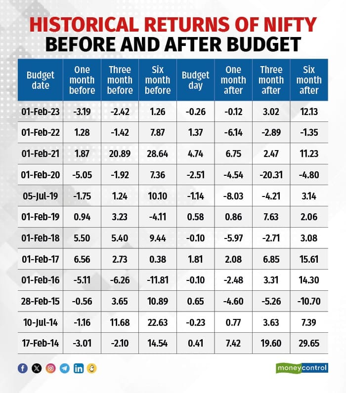 Both the benchmark indices fell five times out of 11 in the three months before the budget presentation. After the budget, the Sensex and Nifty declined over three months five times out of 11.