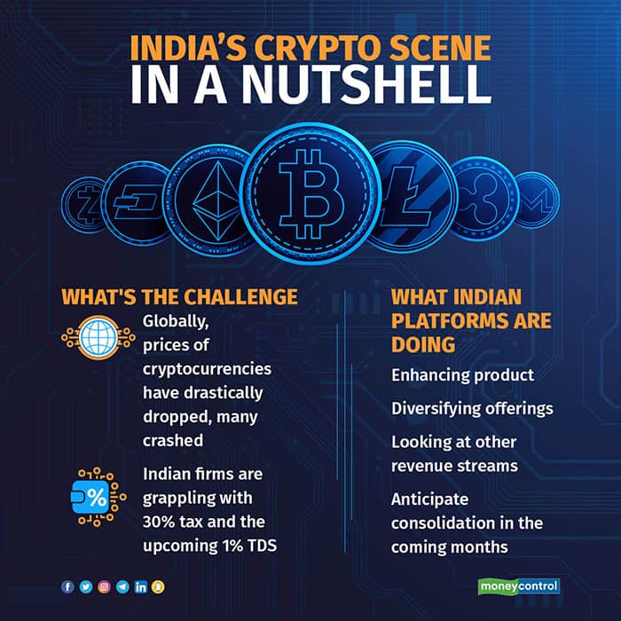 After a year of aggressive marketing, and high cash burn, Indian crypto platforms are now back to basics of focusing on products and looking at growing avenues of revenue generation, as they grapple with declining trading volumes, which is set to fall further as the 1 percent tax deducted at source (TDS) regime kicks in next month.