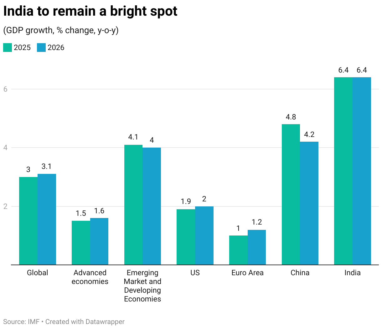 The multilateral institution also raised India’s FY27 growth forecast to 6.4 percent, up from 6.3 percent previously. “In India, growth is projected to be 6.4 percent in 2025 and 2026, with both numbers revised slightly upward, reflecting a more benign external environment than assumed in the April reference forecast,” the Washington-based lender noted.