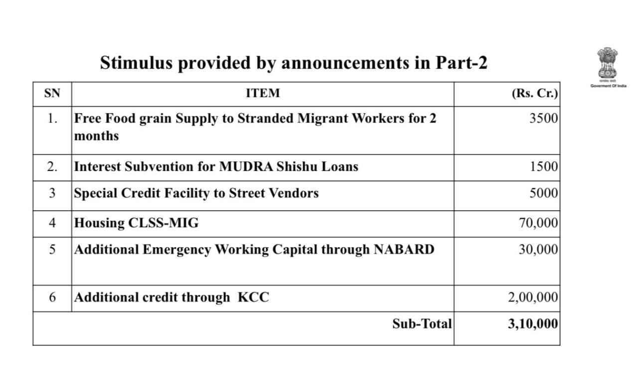 The second tranche on May 14 focussed on migrant workers, street vendors, small traders, self-employed people and small farmers.
