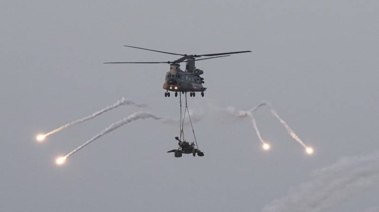 An Apache attack helicopter demonstrated its firepower in this event for the first time, while Mi-17 helicopters engaged ground targets. The IAF’s Chinook helicopters demonstrated rapid deployment of combat assets by airlifting the Army’s M-777 Ultra-Light Howitzers in an underslung mode.