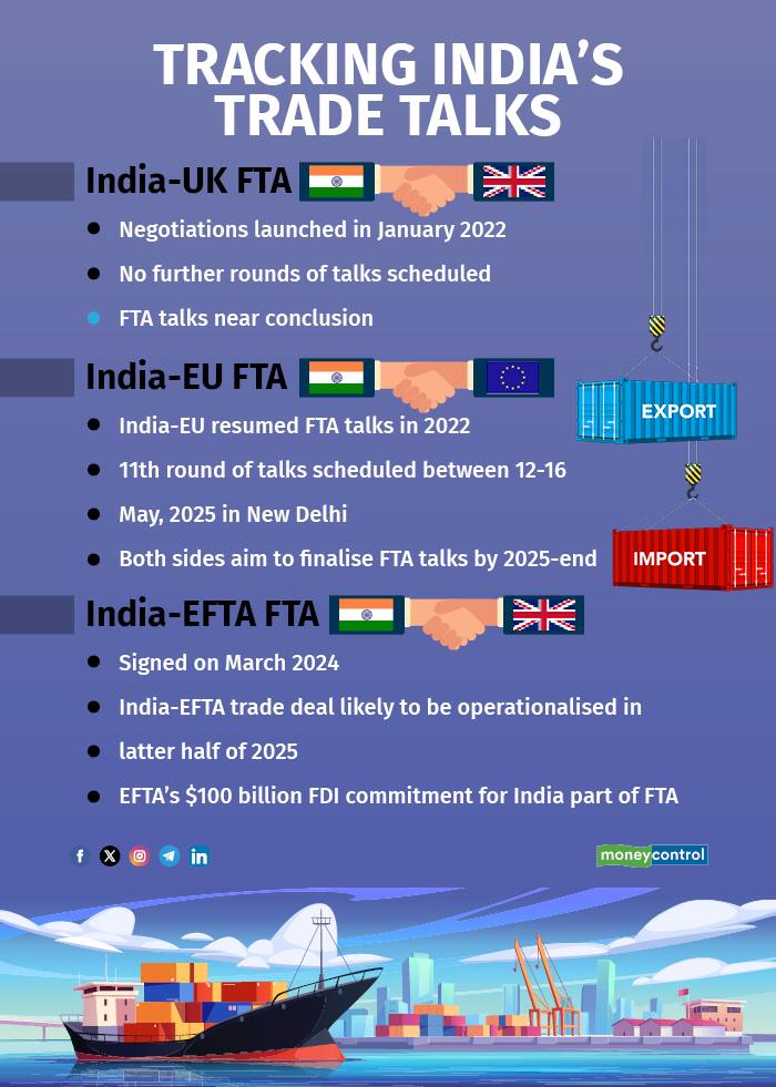 Back in February this year, India and UK decided to restart negotiations for the FTA almost a year after talks stalled in May 2024 ahead of UK's general elections.