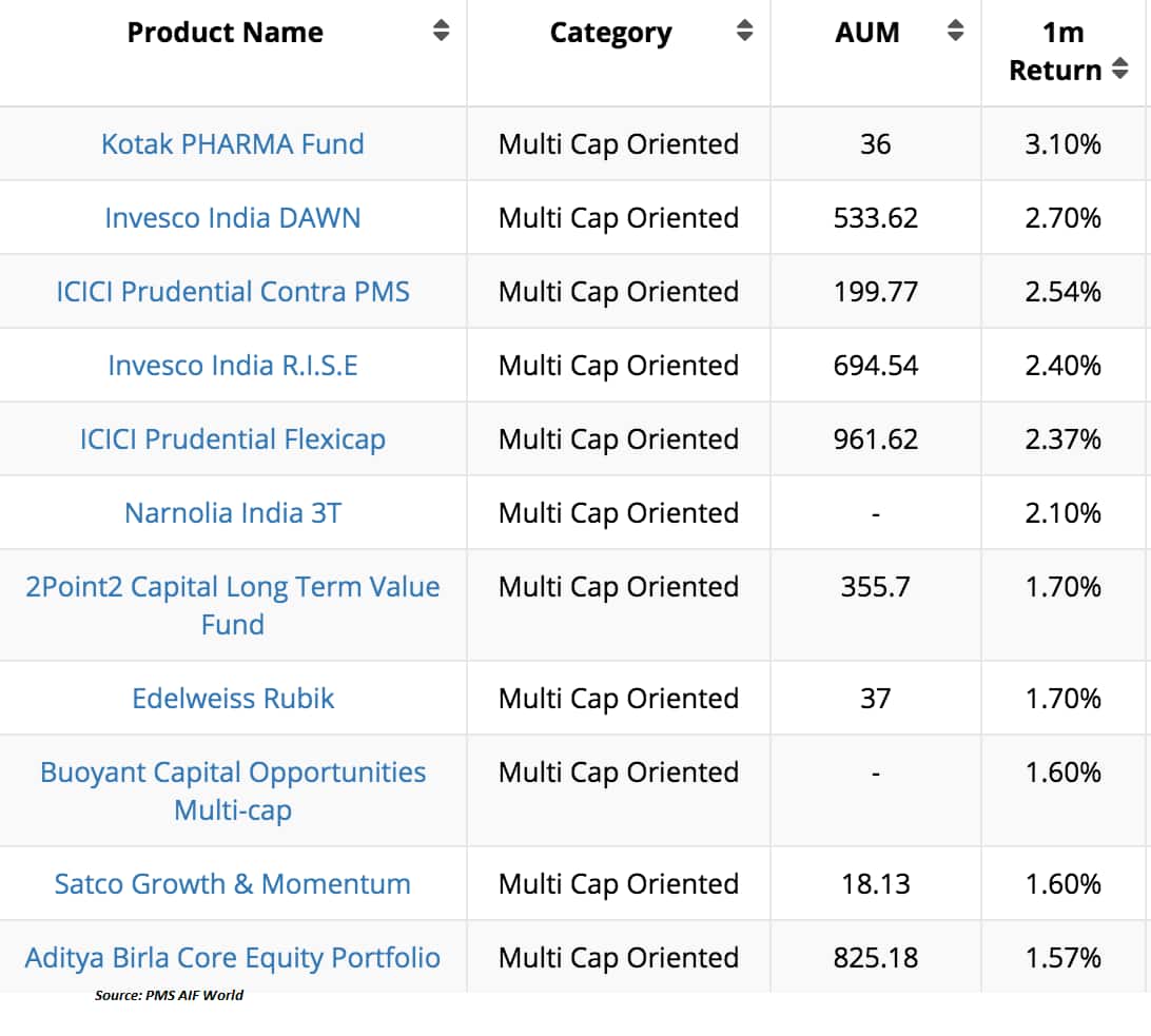 Other major gainers from the multi-cap space include Invesco India DAWN (2.7 percent), ICICI Prudential Contra PMS (2.4 percent), Invesco India R.I.S.E (2.4 percent) and ICICI Prudential Flexicap (2.37 percent).