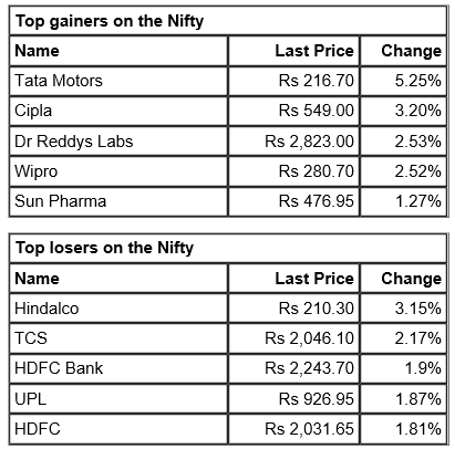 Bharti Airtel, Asian Paints, Hindalco Industries, TCS and UPL were the top losers, while Tata Motors, Wipro, Cipla, HUL and Adani Ports were among major gainers on the Nifty.