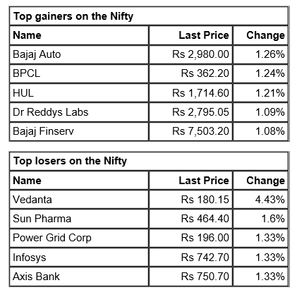 Indiabulls Housing Finance, Bajaj Finserv, Bharti Airtel, Bajaj Auto and Dr Reddy's Labs were gainers while Infosys, TCS, Vedanta, Sun Pharma, Power Grid, Tech Mahindra were losers among Nifty50 stocks.