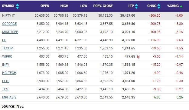 Markets remained volatile and ended with a cut of nearly half a percent. After the initial downtick, the benchmark hovered in a narrow range for most of the session however selling pressure in the final hour pushed the markets lower. A mixed trend was witnessed amongst the sectoral indices wherein metal, energy and realty were the top losers. The broader markets, midcap and smallcap, continued to underperform which ended lower in the range of 1.3-1.7%.