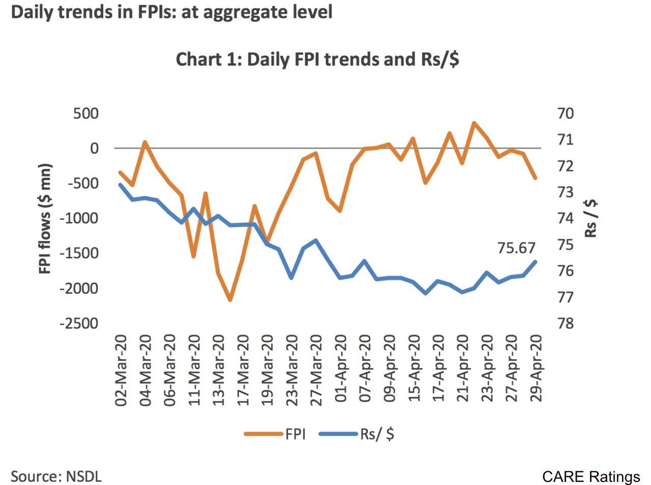 According to CARE Ratings, the announcement of lockdown, as well as the sobering economic outlook from the International Monetary Fund (IMF) and World Bank, roiled FPIs' sentiment.