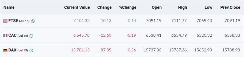 European markets are trading mixed with DAX down half a percent while FTSE is trading in the green