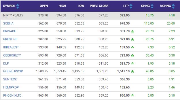 Nifty Realty emerged as the top sectoral gainer, closing 4.20 percent higher, followed by Nifty IT which rose 1.29 percent. Nifty Auto (down 0.40 percent), media (down 0.35 percent), PSU bank (down 0.33 percent) and pharma (down 0.27 percent) closed in the red.