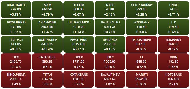 Sensex at the closing