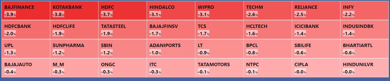 The Nifty50 plunged 288 points or 1.75 percent to 16,190, and the BSE Sensex fell 1,053 points or 1.9 percent to 54,267, as all sectoral indices traded in red.