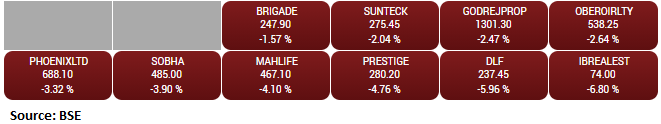 BSE Realty index shed 3 percent dragged by the Indiabulls Real Estate, DLF, Prestige Estate
