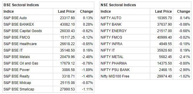 BSE Midcap index fell 1.14 percent and the smallcap index closed with a loss of 1.06 percent.