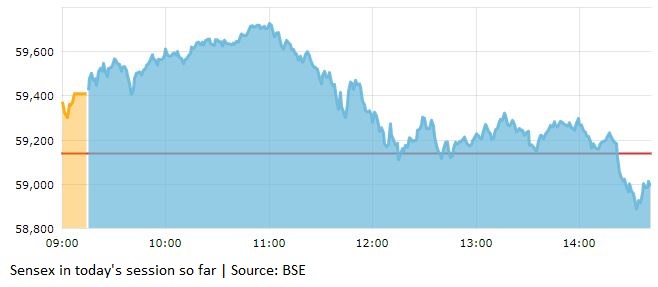 Sensex closed 125 points, or 0.21 percent, lower at 59,015.89 while the Nifty finished at 17,585.15, down 44 points, or 0.25 percent.