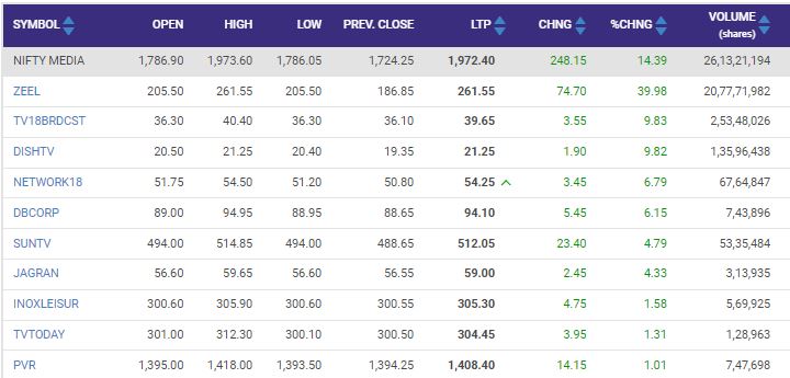 Nifty Media index jumps more than 14 percent in intraday trade.